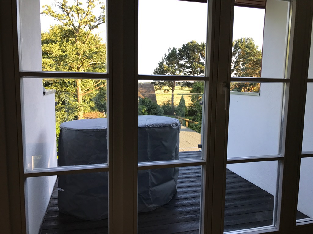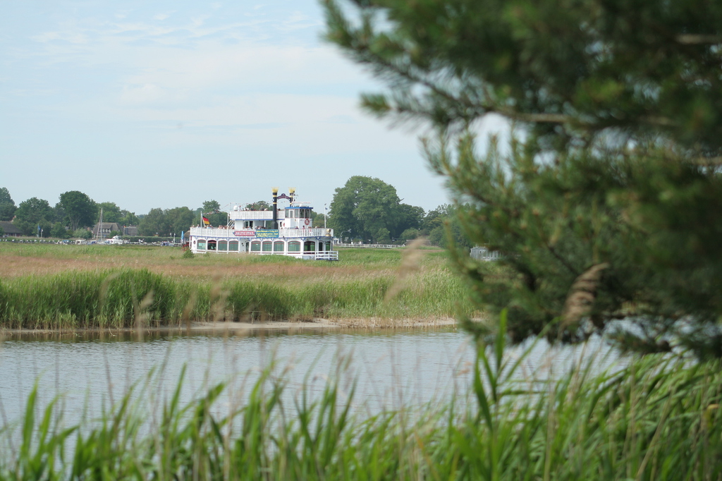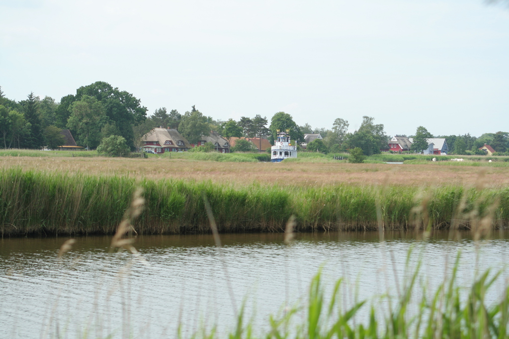 Genießen Sie freien Blick auf Bodden und weite Wiesen.