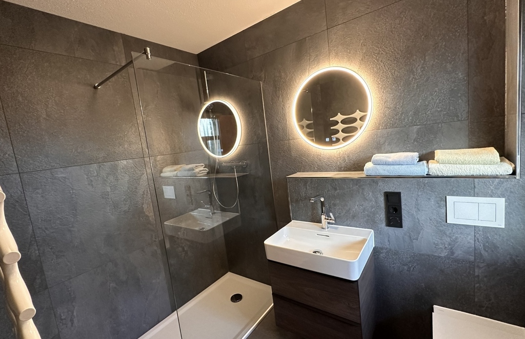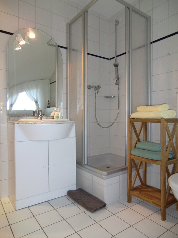 1. Bad; im Erdgeschoss: Dusche, WC, Handtuchtrockner, Fenster