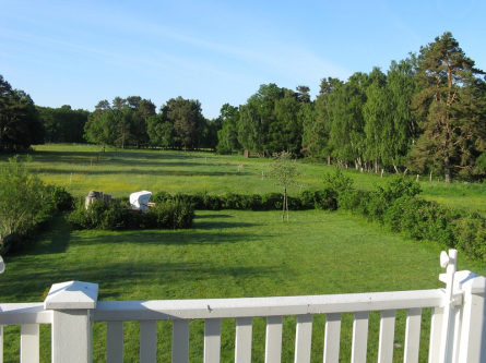 große Wiese mit Strandkorb und Grillplatz