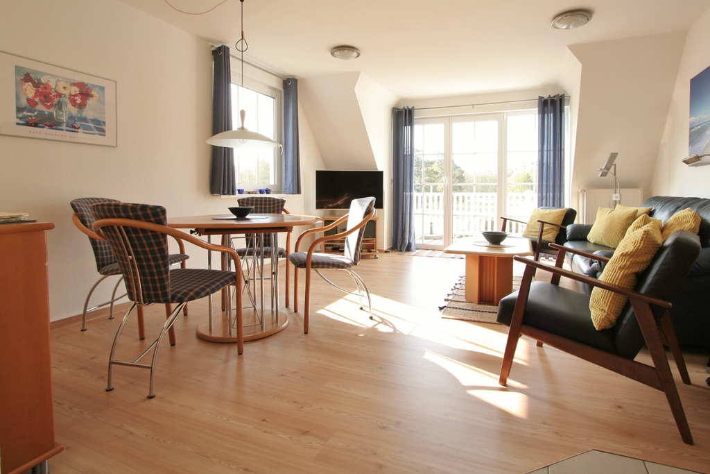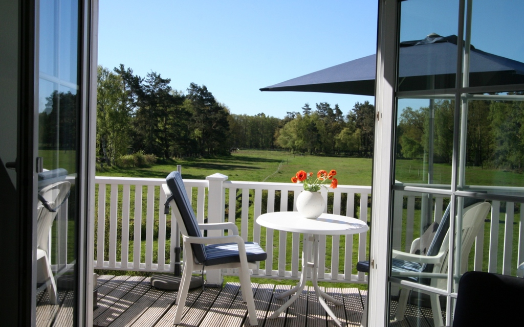 und sonnigem Balkon mit traumhaftem Blick zum Darßwald