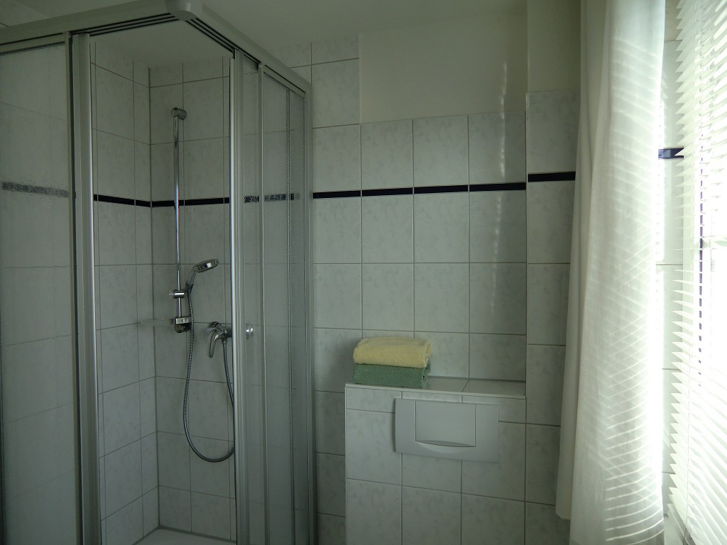 Tageslichtbad: Dusche/ WC / Fenster/ Waschmaschine/ Wäscheständer