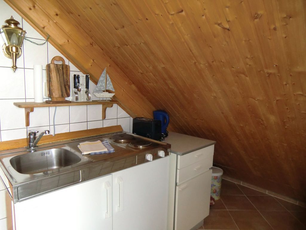 Küche: 2 Plattenherd, Kühlschrank